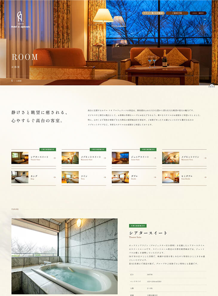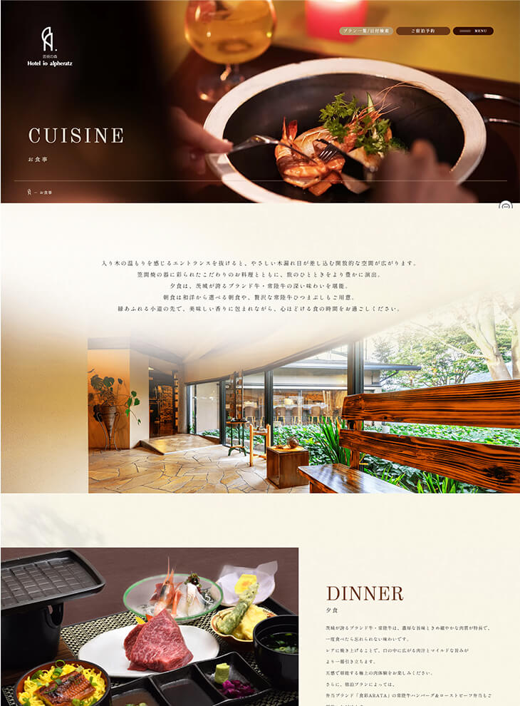 茨城県産の常陸牛を使用した贅沢なお食事や多彩なお部屋などホテル イオ アルフェラッツ様の魅力を表現できるように制作いたしました。