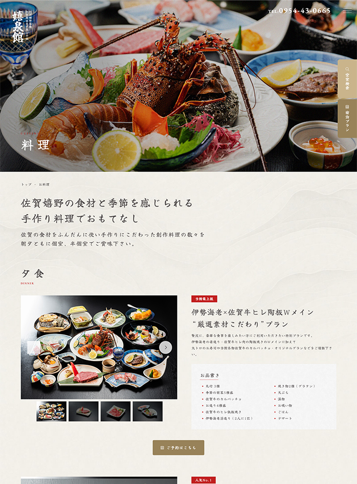 嬉泉館様は昭和11年に創業した嬉野で8つしかない源泉の一つをもつ温泉旅館。和風の雰囲気を大切に写真や要素、フォントなどをバランスよく使い旅館の魅力を出せるサイトを意識して制作いたしました。