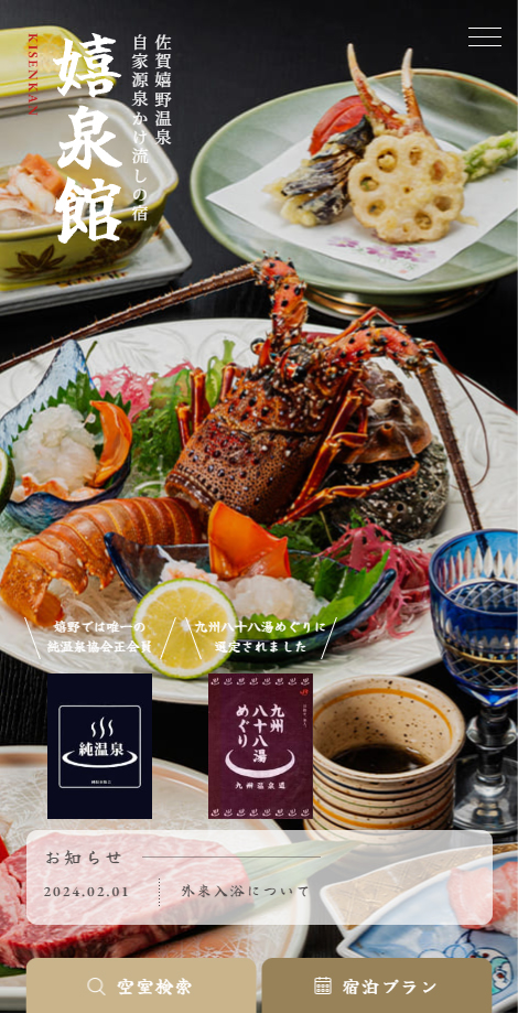 佐賀嬉野温泉 源泉かけ流しの宿 嬉泉館様のホームページ制作を行いました。