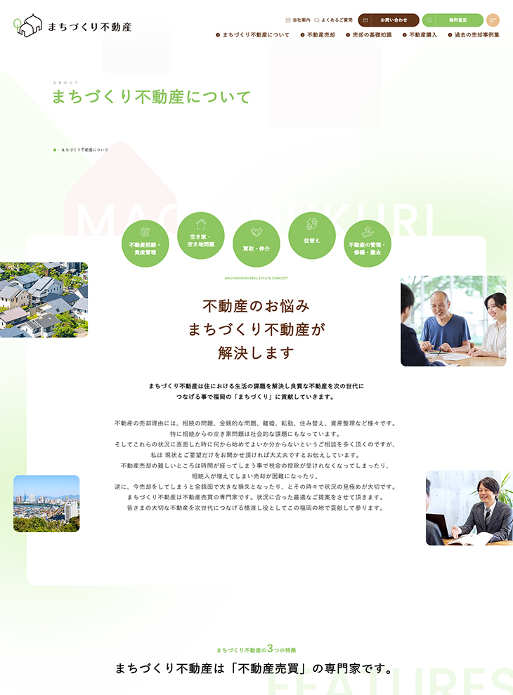 福岡県大野城市に拠点を置く、まちづくり不動産様のWEBサイト・スマートフォンサイトの制作および写真撮影を担当させていただきました。